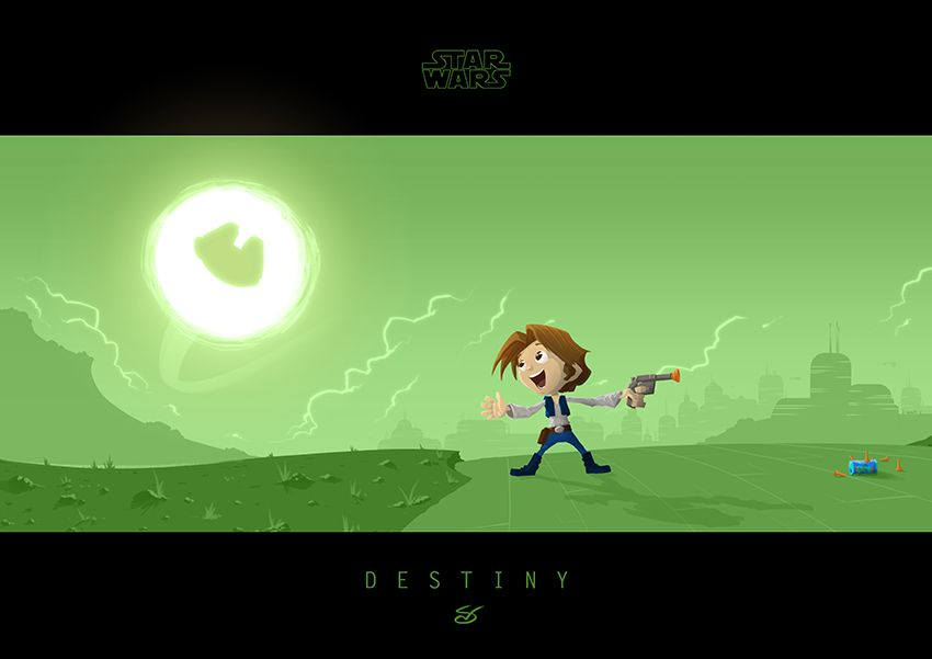 Leia is leading an imaginary charge into battle, whilst Han has distracted from target practice by a famous ship roaring over head. The colour palettes have been carefully selected to compliment Little Luke's destiny meaning they'll look great as a set.